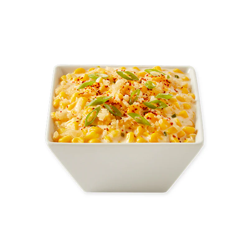 Grilled corn with Kewpie Mayo, mozzarella, garlic, Korean red chili flakes and topped with green onion.