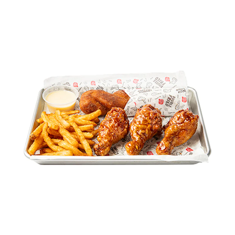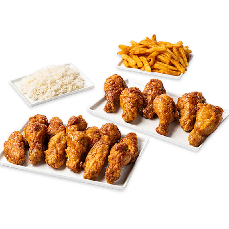All your favs! 2 drums, 4 wings, Bulgogi Fries, Pork Potstickers, Korean Street Corn and Coleslaw. Your choice of Bonchon signature sauce and a dipping sauce. Feeds 2-3